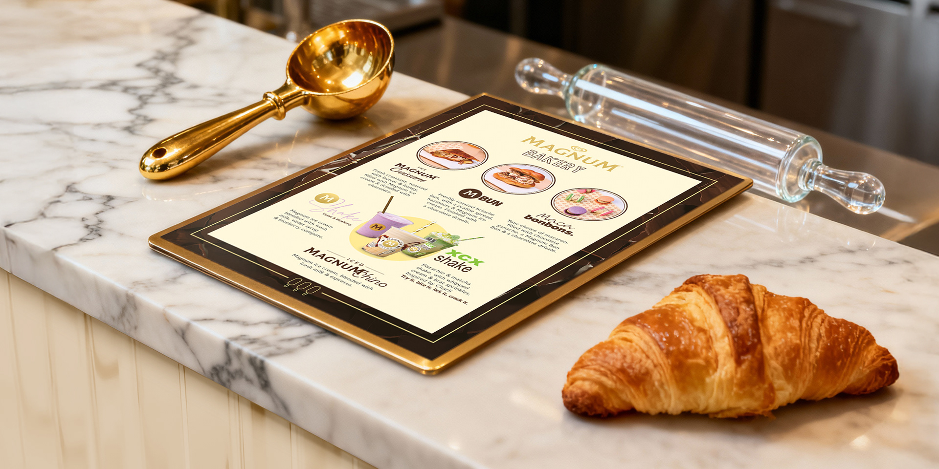 Create a visually compelling and irresistible concept—the 'Trending Treats Bakery'—and produce initial mock-ups and a pitch deck strong enough to secure immediate buy-in from internal stakeholders at the Global Magnum Brand Team.